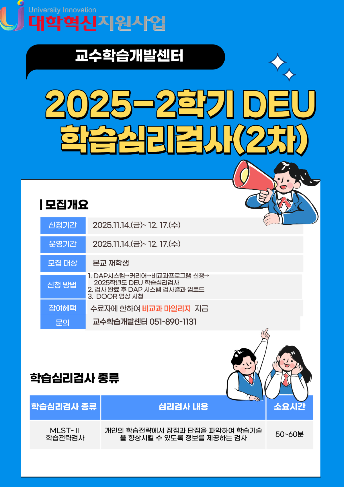 [안내][대학혁신지원사업] 2025-2학기 DEU 학습심리검사 신청 안내(2차)