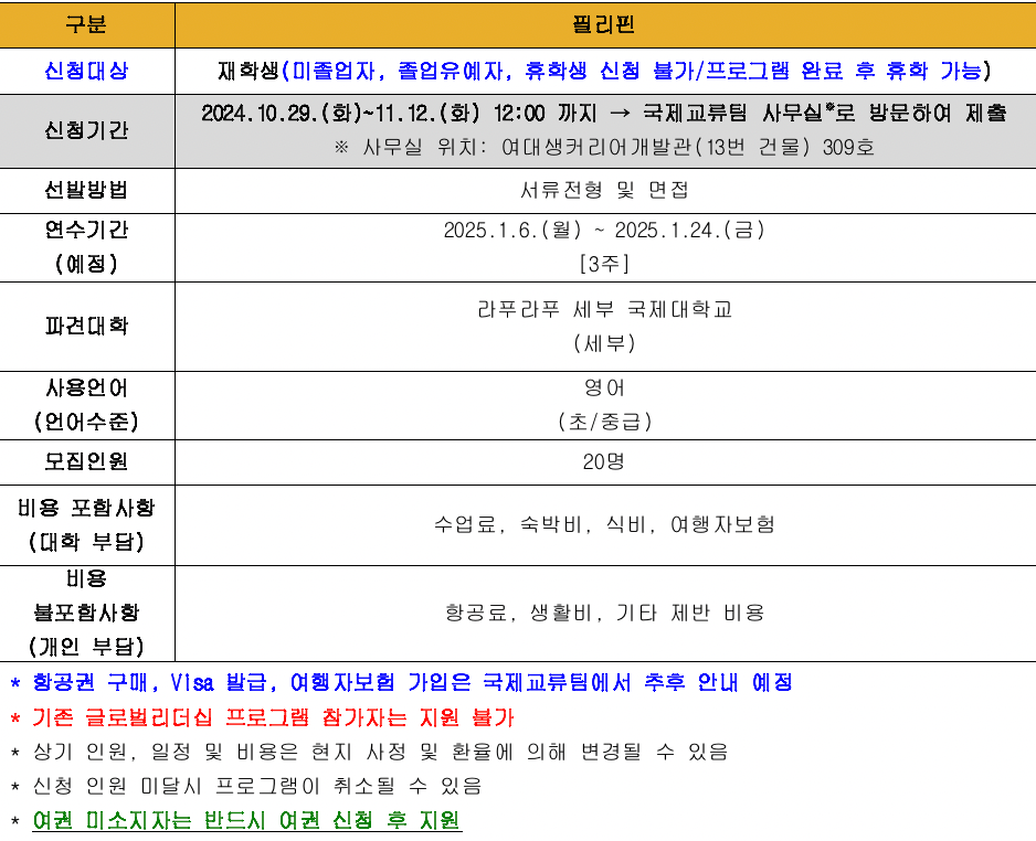 [대학혁신사업] 2024학년도 동계 글로벌리더십 프로그램 참가 학생 모집 안내